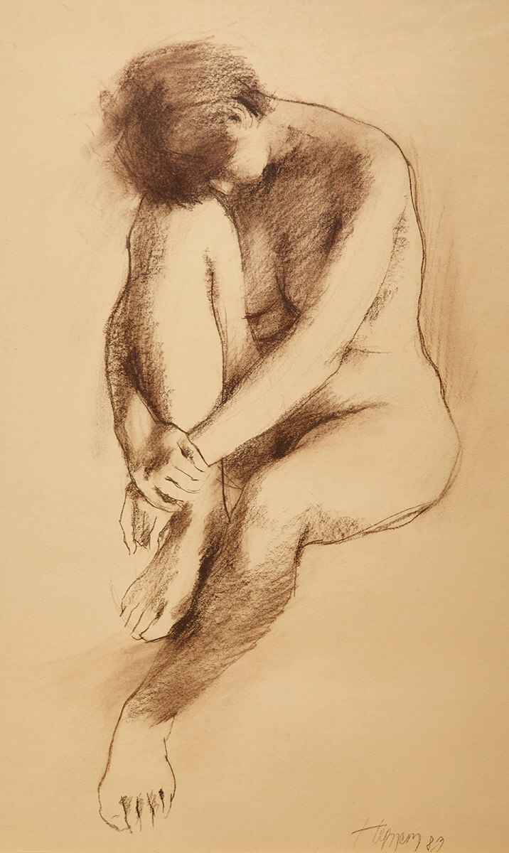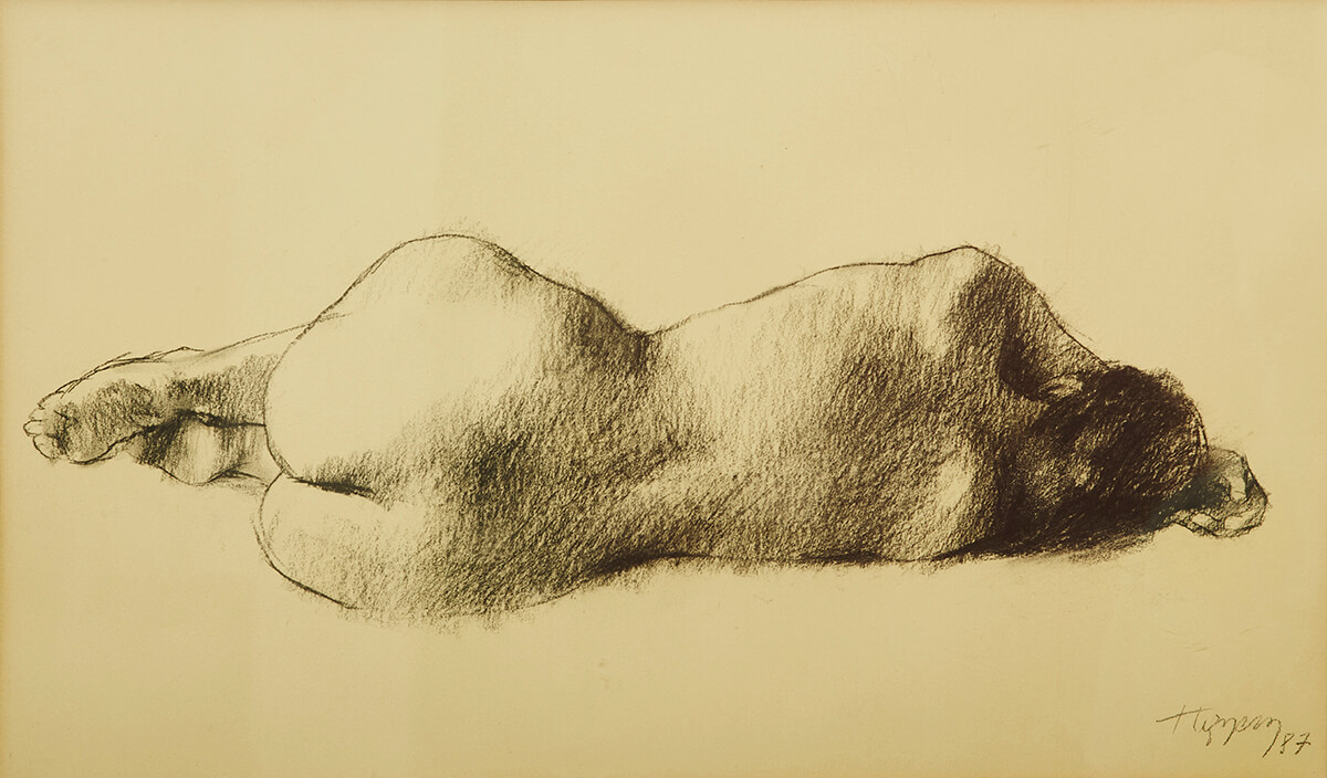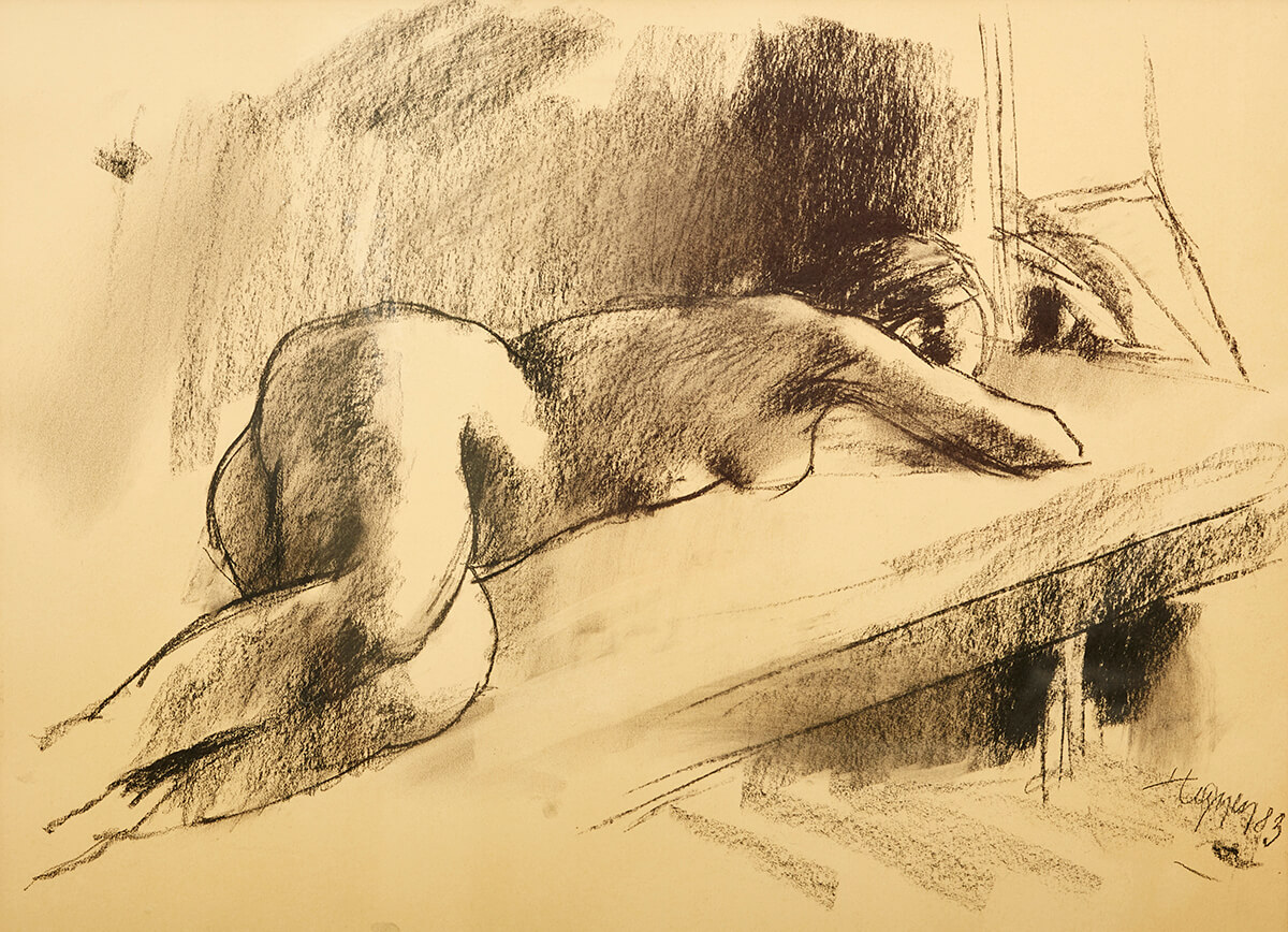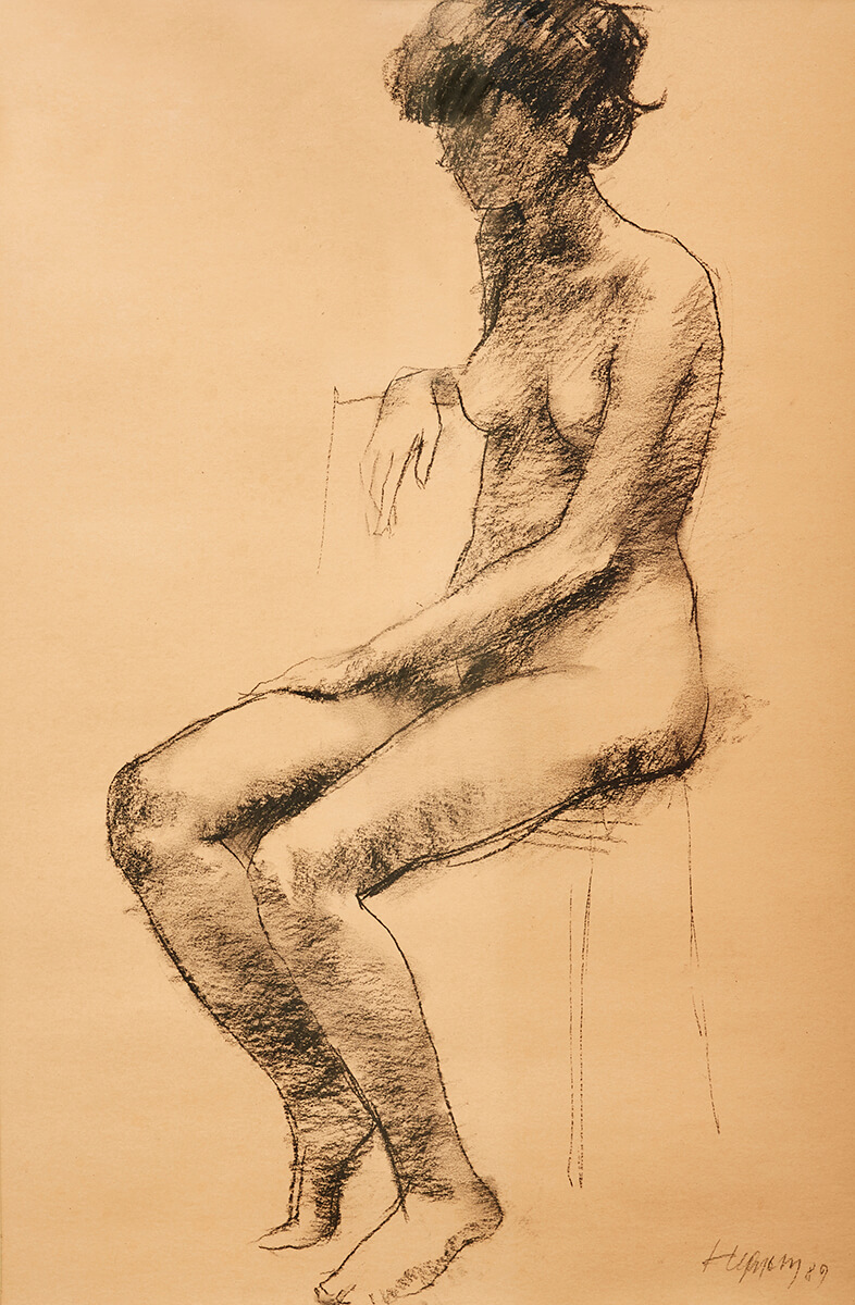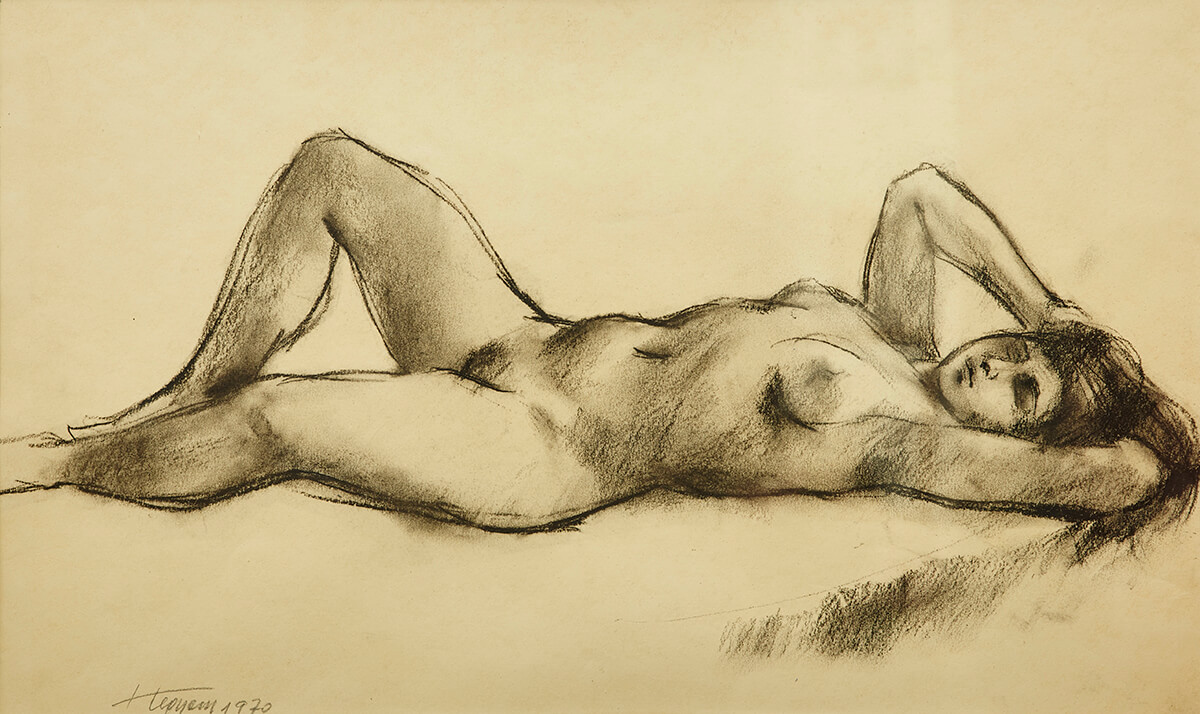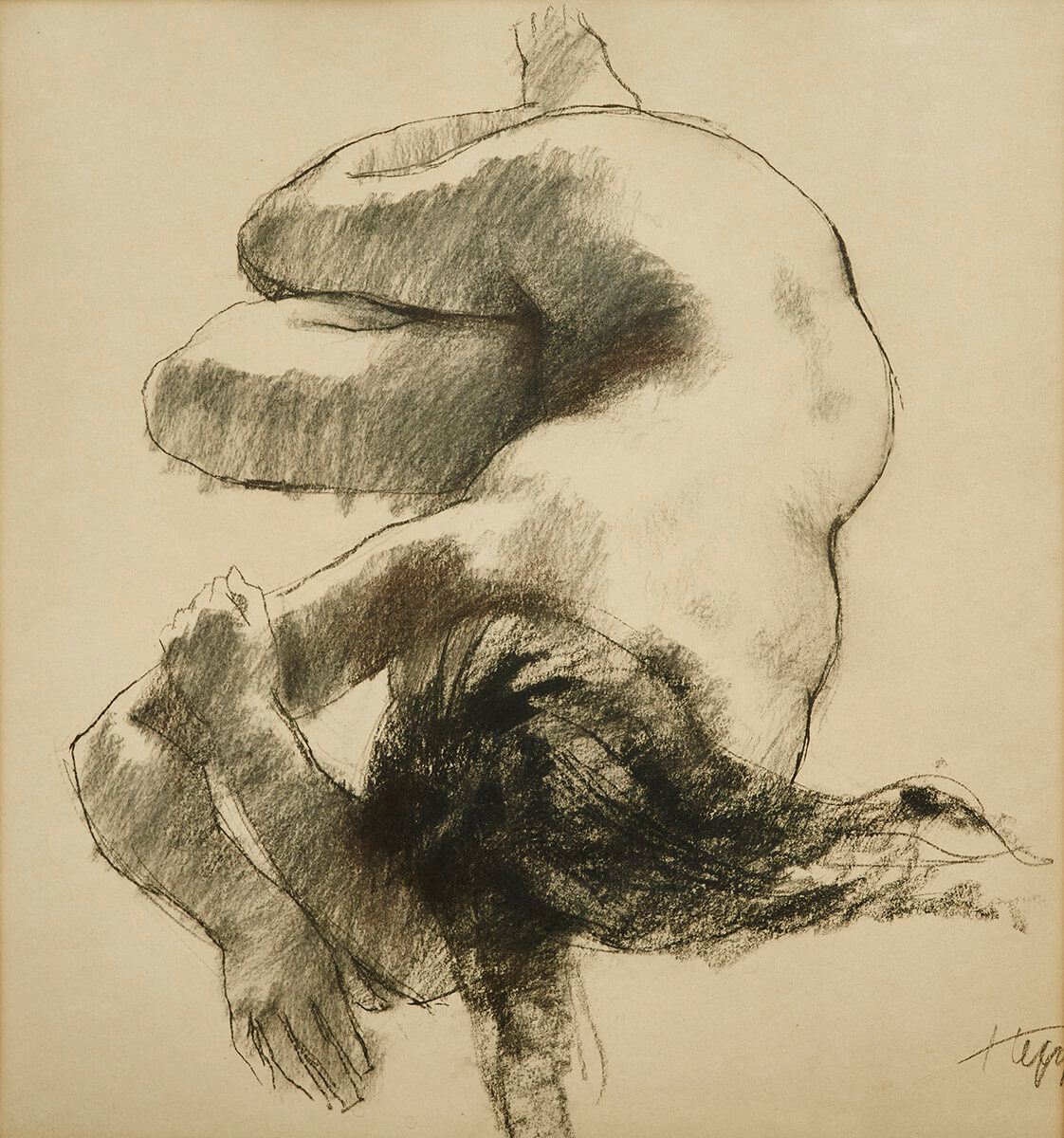 Akty sú kombináciou sebaistých gestických ťahov a ľahko nahodených škvŕn za ktorou je skrytý neviditeľne prítomný pevný základ anatomickej konštrukcie, perspektívy a kompozície. Dômyselná kompozičná výstavba umožňuje dosiahnuť širokú škálu výrazu s úsporne využívanými vyjadrovacími prostriedkami. Autor majstrovsky strieda plastické modelovanie svetlom a siluety škvŕn v graficky usporiadanom celku vodiacom zrak diváka po gracióznych tvaroch ženského tela. Postavy sú zaobalené do vlastných obrysov a podobne ako portréty, sú obklopené atmosférou intimity a bezpečia.