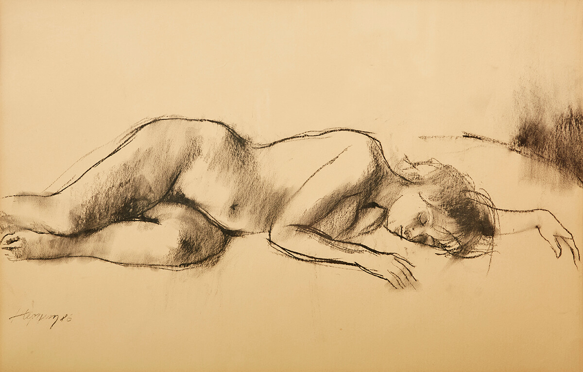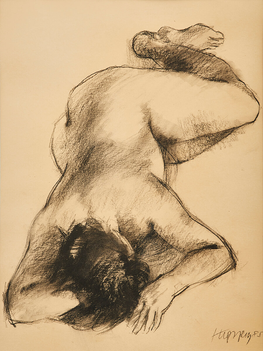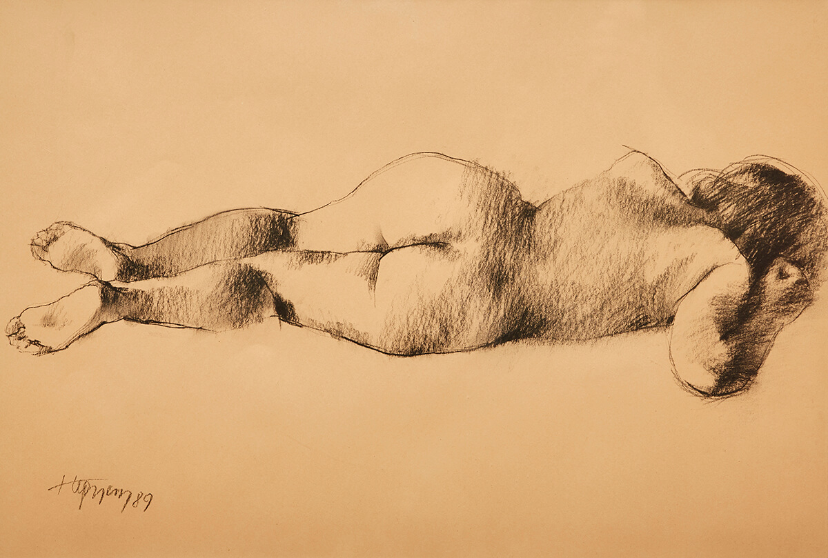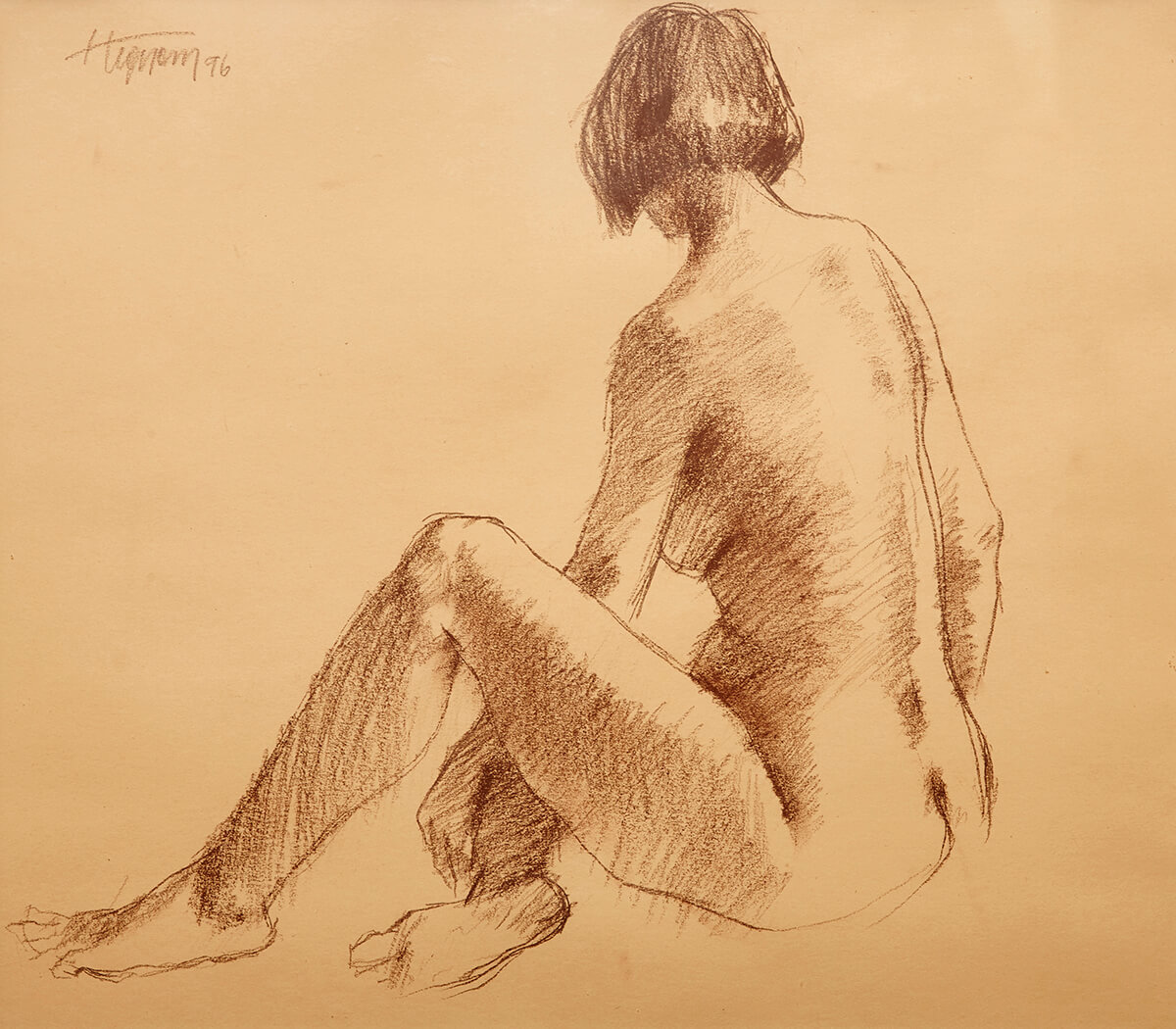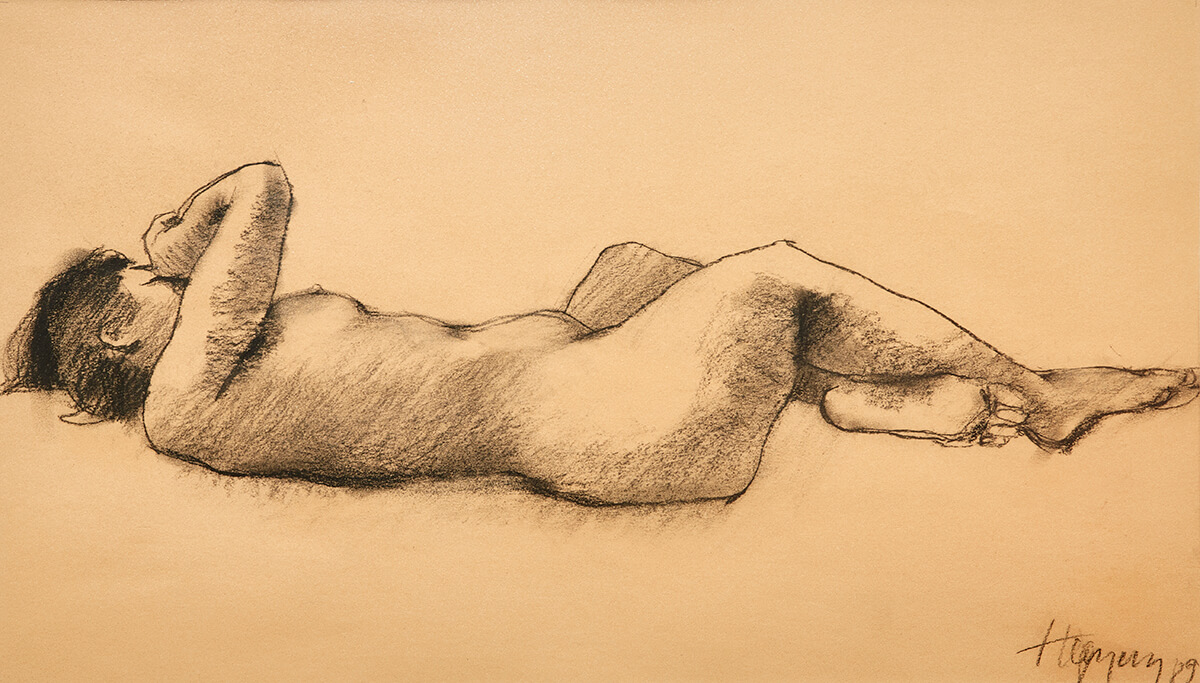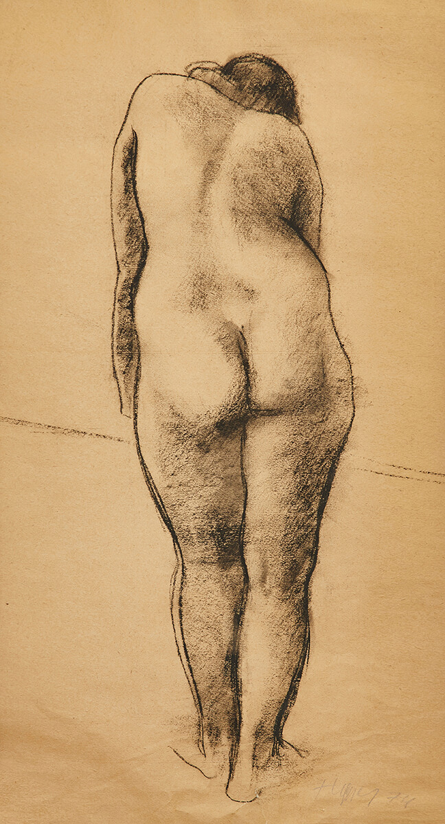 Akty sú kombináciou sebaistých gestických ťahov a ľahko nahodených škvŕn za ktorou je skrytý neviditeľne prítomný pevný základ anatomickej konštrukcie, perspektívy a kompozície. Dômyselná kompozičná výstavba umožňuje dosiahnuť širokú škálu výrazu s úsporne využívanými vyjadrovacími prostriedkami. Autor majstrovsky strieda plastické modelovanie svetlom a siluety škvŕn v graficky usporiadanom celku vodiacom zrak diváka po gracióznych tvaroch ženského tela. Postavy sú zaobalené do vlastných obrysov a podobne ako portréty, sú obklopené atmosférou intimity a bezpečia.