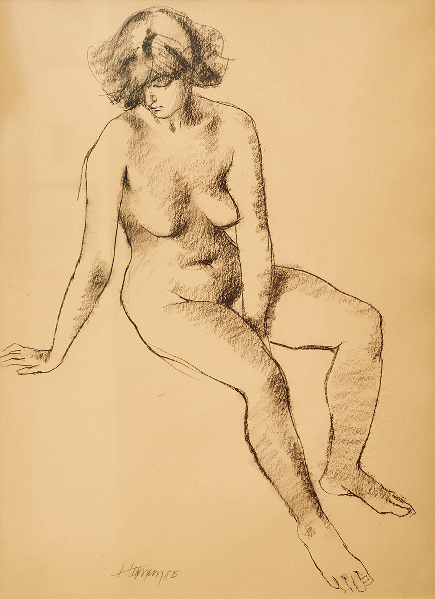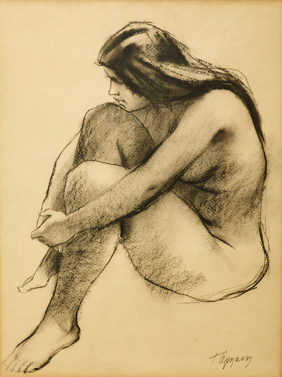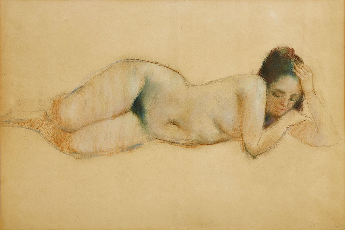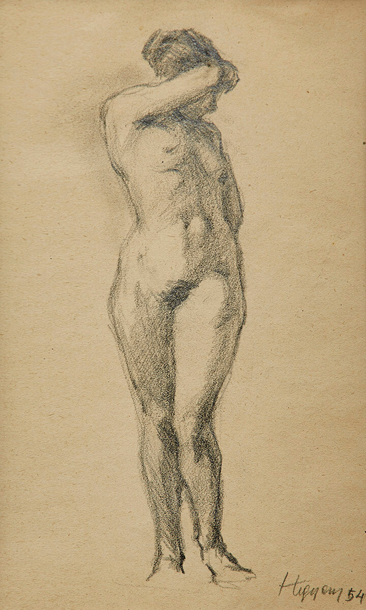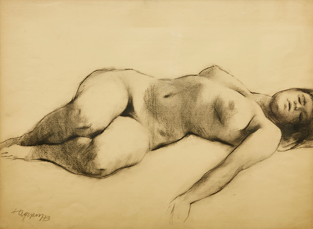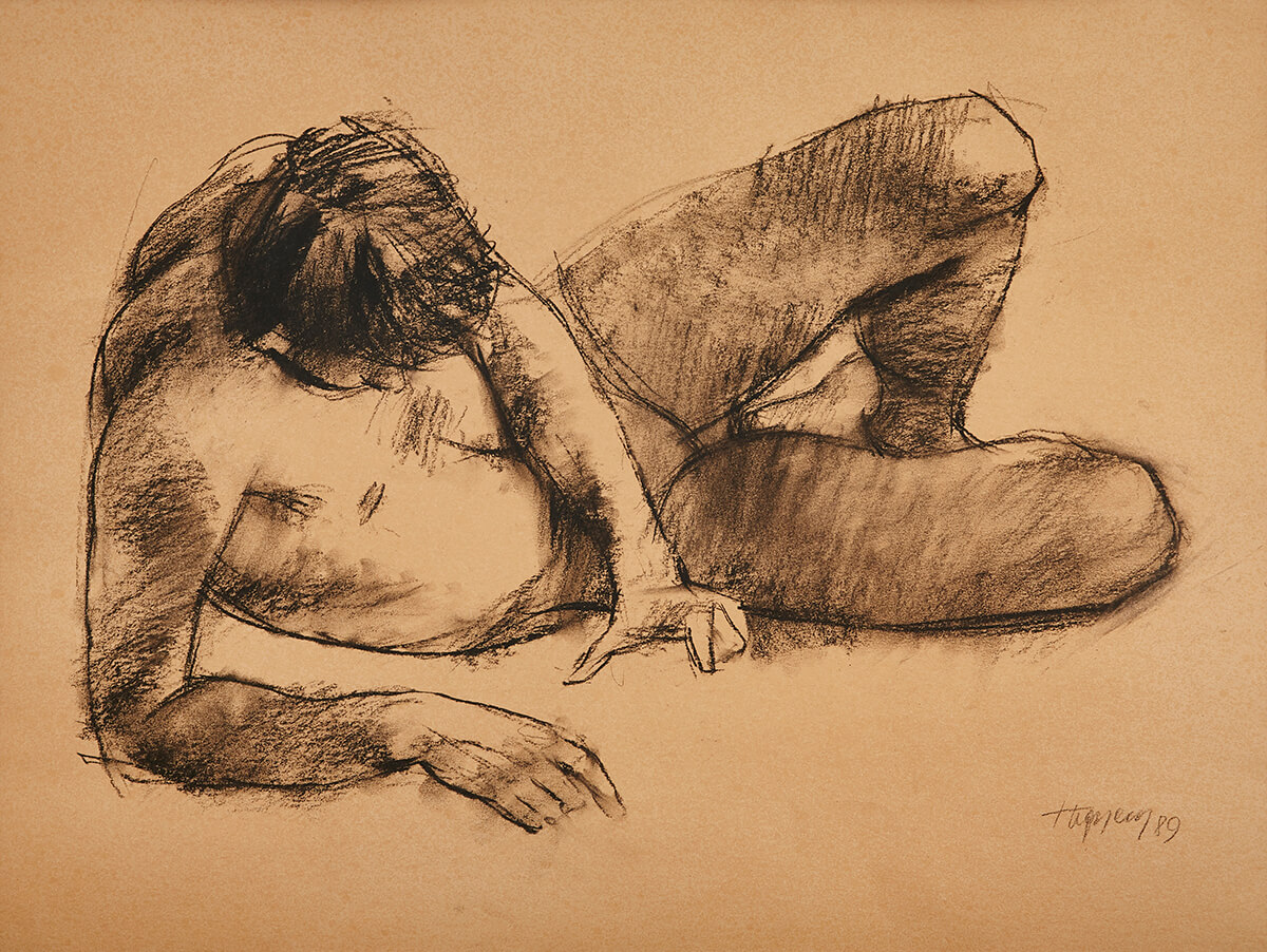 Akty sú kombináciou sebaistých gestických ťahov a ľahko nahodených škvŕn za ktorou je skrytý neviditeľne prítomný pevný základ anatomickej konštrukcie, perspektívy a kompozície. Dômyselná kompozičná výstavba umožňuje dosiahnuť širokú škálu výrazu s úsporne využívanými vyjadrovacími prostriedkami. Autor majstrovsky strieda plastické modelovanie svetlom a siluety škvŕn v graficky usporiadanom celku vodiacom zrak diváka po gracióznych tvaroch ženského tela. Postavy sú zaobalené do vlastných obrysov a podobne ako portréty, sú obklopené atmosférou intimity a bezpečia.